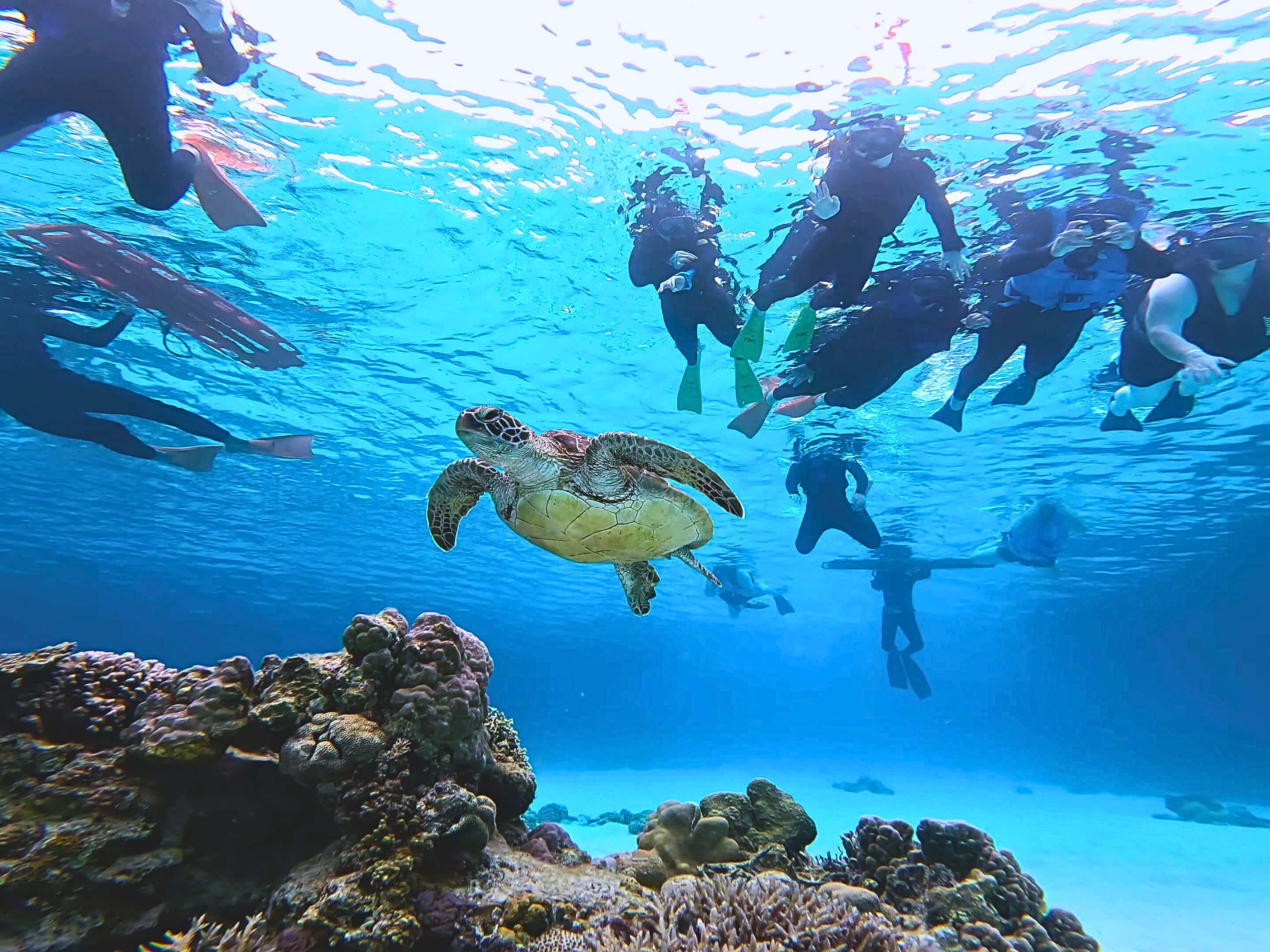 与海龟并肩游动,是冲绳最令人难忘的体验之一。